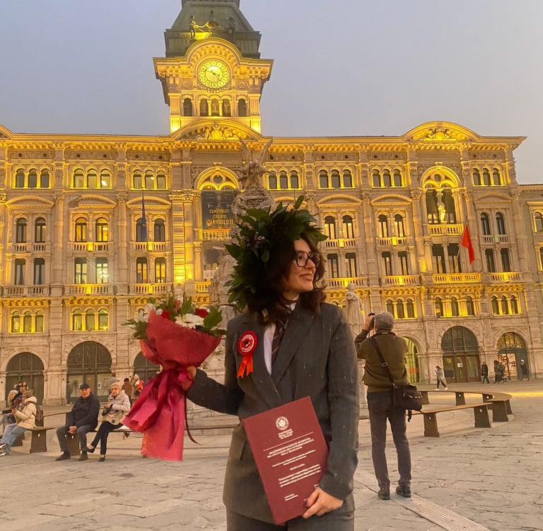 Da quel momento ho capito che quella sarebbe stata la mia direzione. Ho quindi deciso di proseguire il mio percorso iscrivendomi al corso magistrale di traduzione specialistica presso la SSLMIT di Trieste, una delle realtà accademiche più storiche e riconosciute in Italia nell’ambito della traduzione e dell’interpretazione. E proprio qui mi sono laureata nel dicembre del 2025.